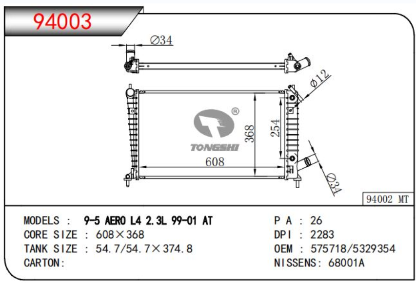 适用于沃尔沃V40 1.9TD D4192T 95- MT散热器