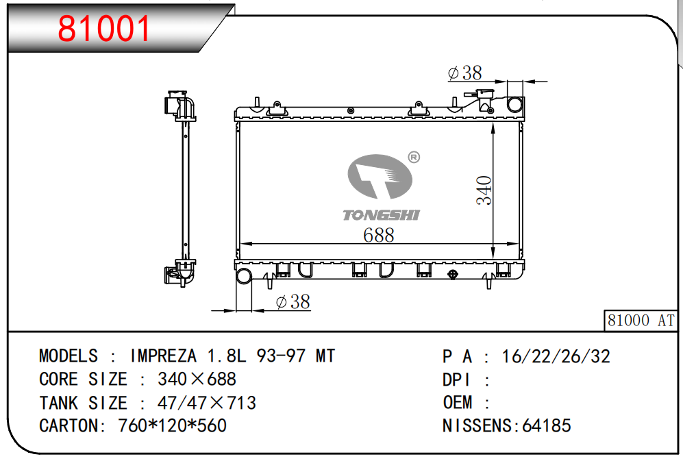 适用于沃尔沃V40 1.9TD D4192T 95- MT散热器