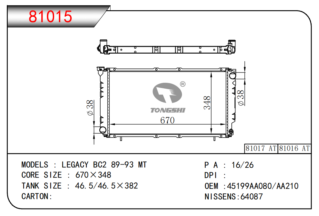 适用于宝马E30 320 i 82-93 AT散热器