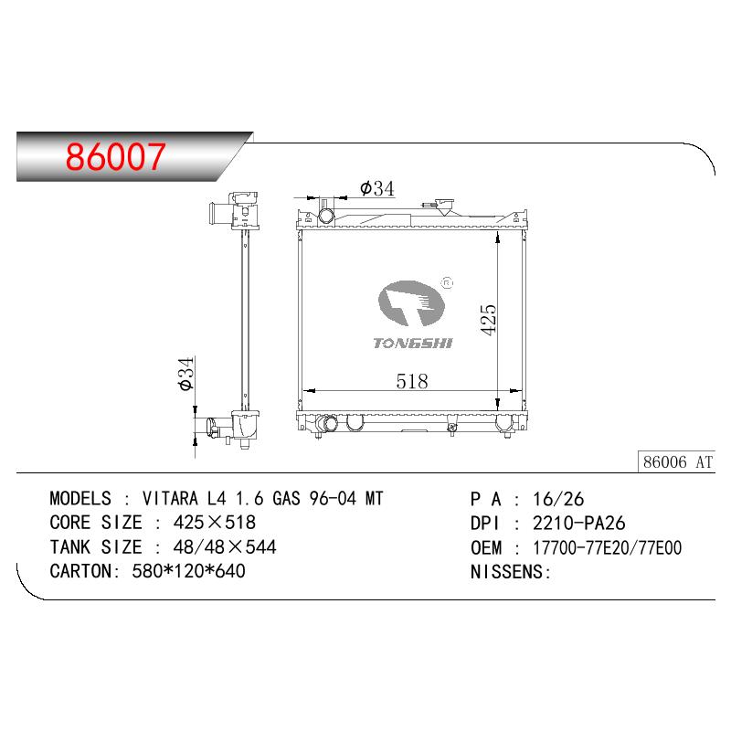 适用于沃尔沃V40 1.9TD D4192T 95- MT散热器