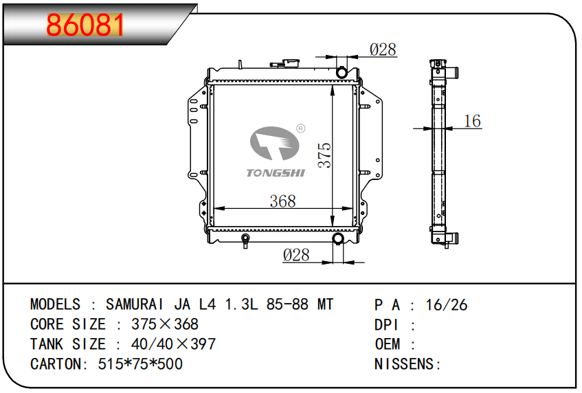 适用于沃尔沃V40 1.9TD D4192T 95- MT散热器