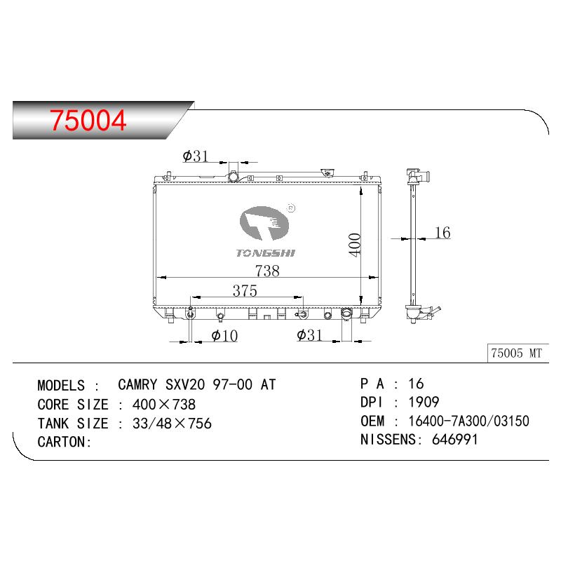 适用于丰田凯美瑞 SXV20 97-00 AT散热器 OEM : 16400-7A300/03150、 16400-7A310/7A311