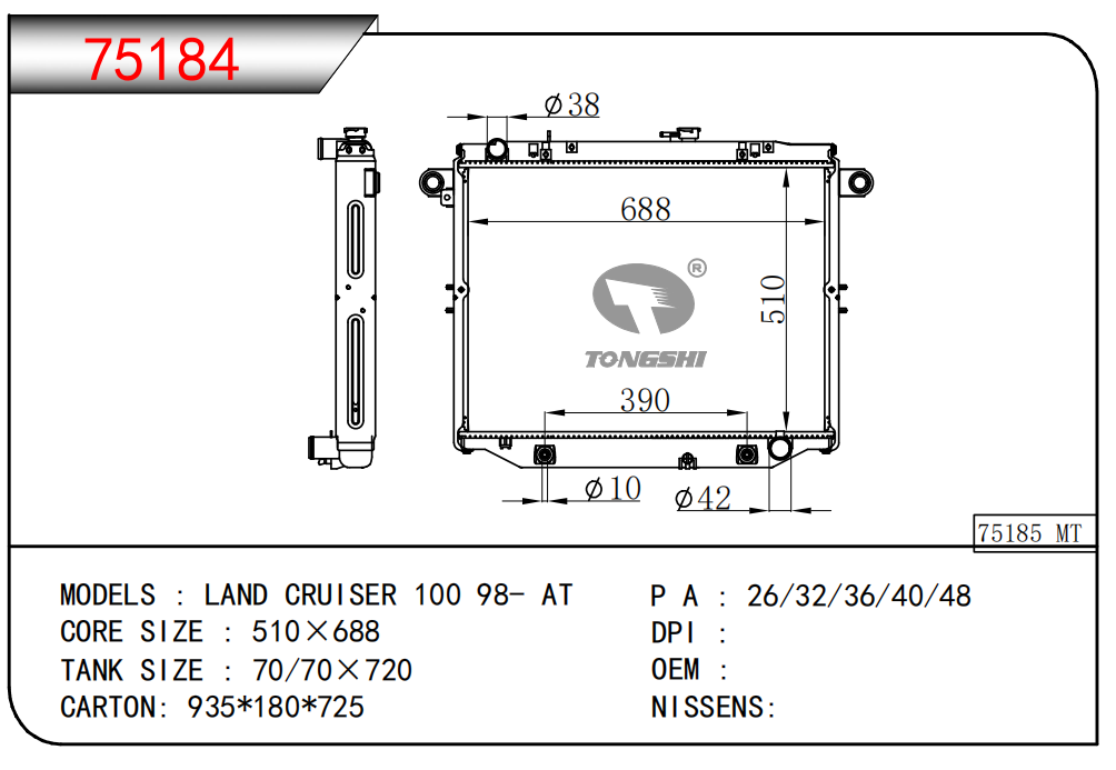 适用于沃尔沃V40 1.9TD D4192T 95- MT散热器