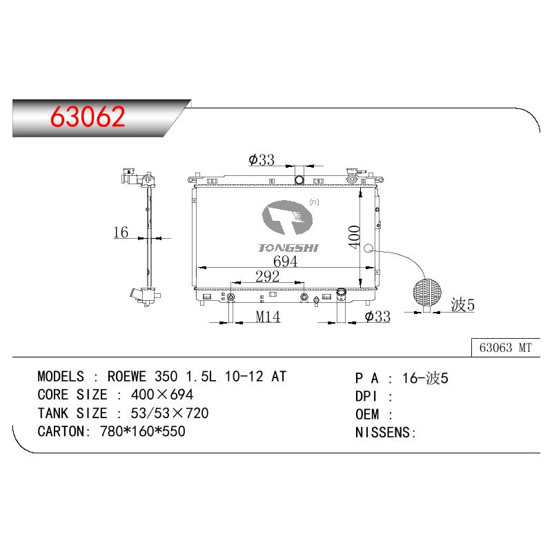 适用于沃尔沃V40 1.9TD D4192T 95- MT散热器