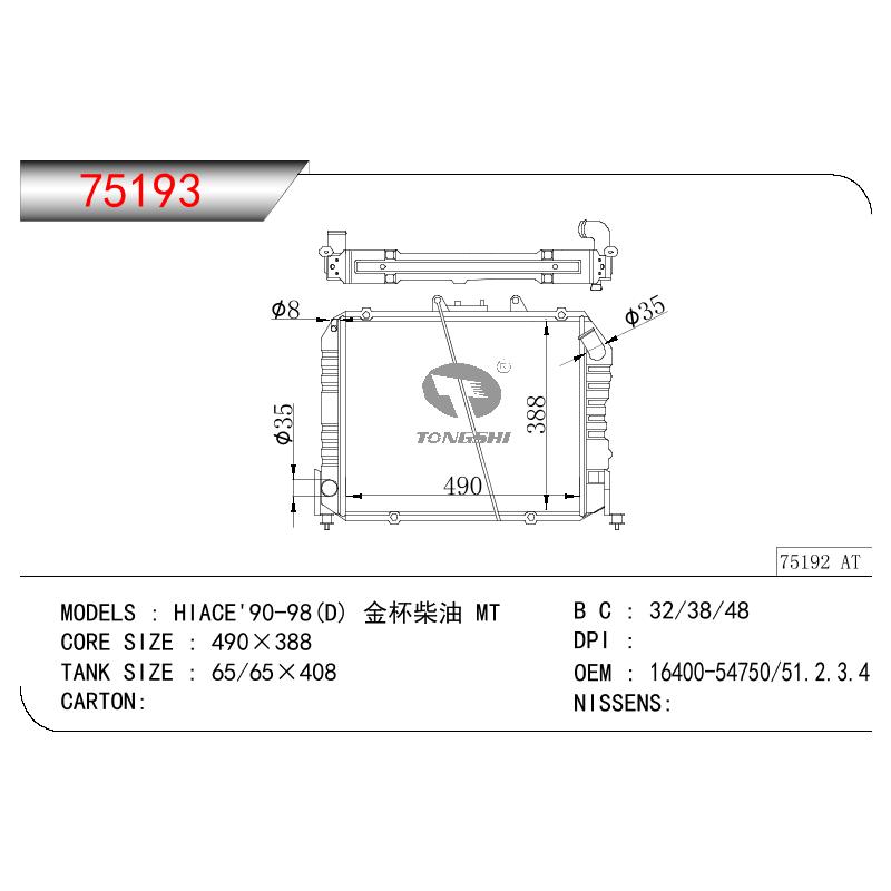 适用于TOYOTA HIACE (D) 金杯柴油 OEM:16400-54750/16400-54751/16400-54752/16400-54753/16400-54754/1640054750/1640054751/1640054752/1640054753/1640054754