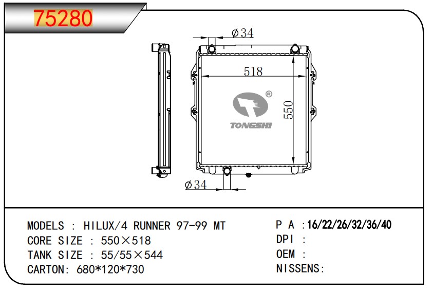 适用于沃尔沃V40 1.9TD D4192T 95- MT散热器