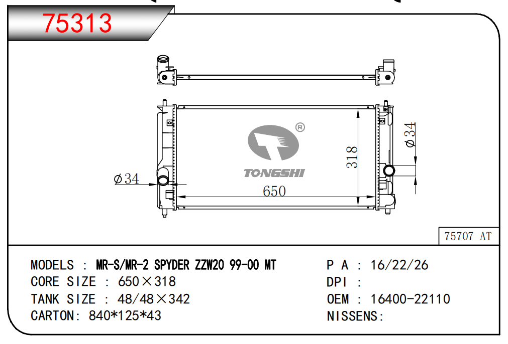 适用于沃尔沃V40 1.9TD D4192T 95- MT散热器