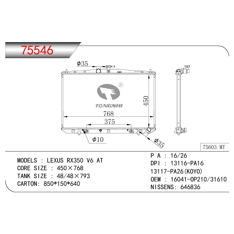 适用于TOYOTA LEXUS RX350 V6 OEM:16041-0P210/16041-31610/16041-0P260/160410P210/1604131610/160410P260