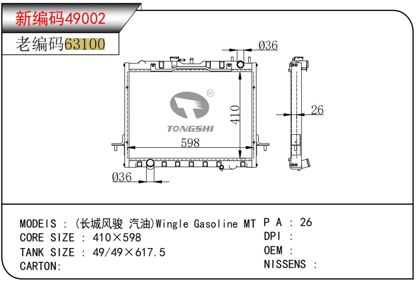 适用于沃尔沃V40 1.9TD D4192T 95- MT散热器