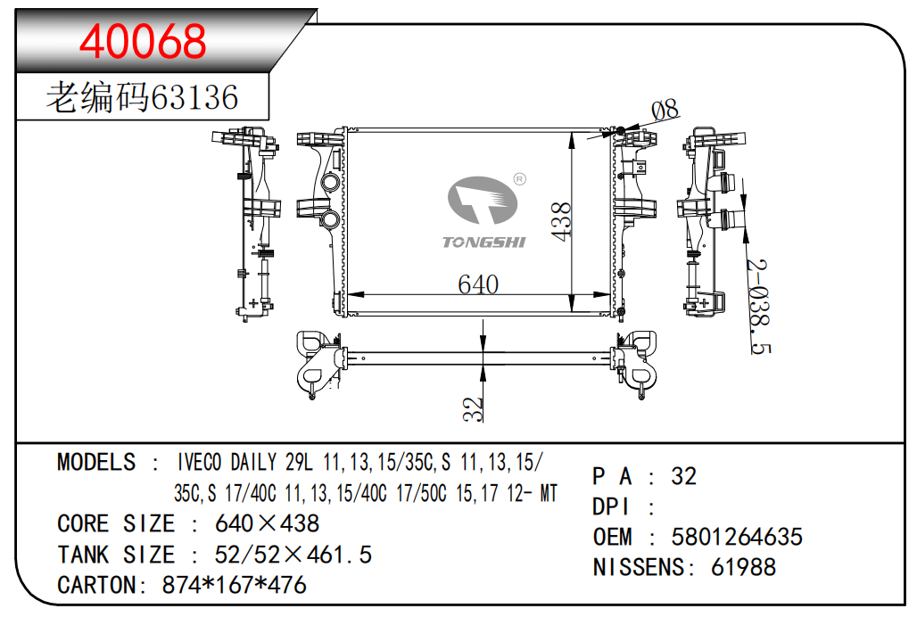 适用于沃尔沃V40 1.9TD D4192T 95- MT散热器