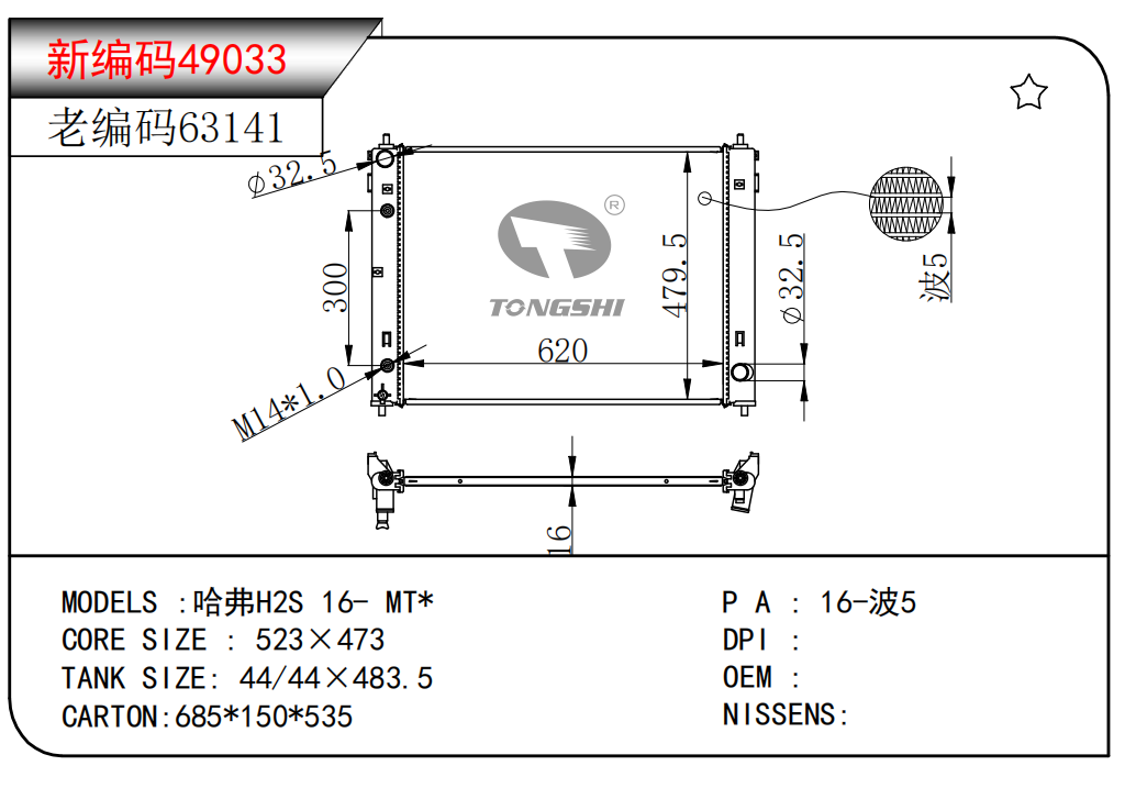 适用于沃尔沃V40 1.9TD D4192T 95- MT散热器