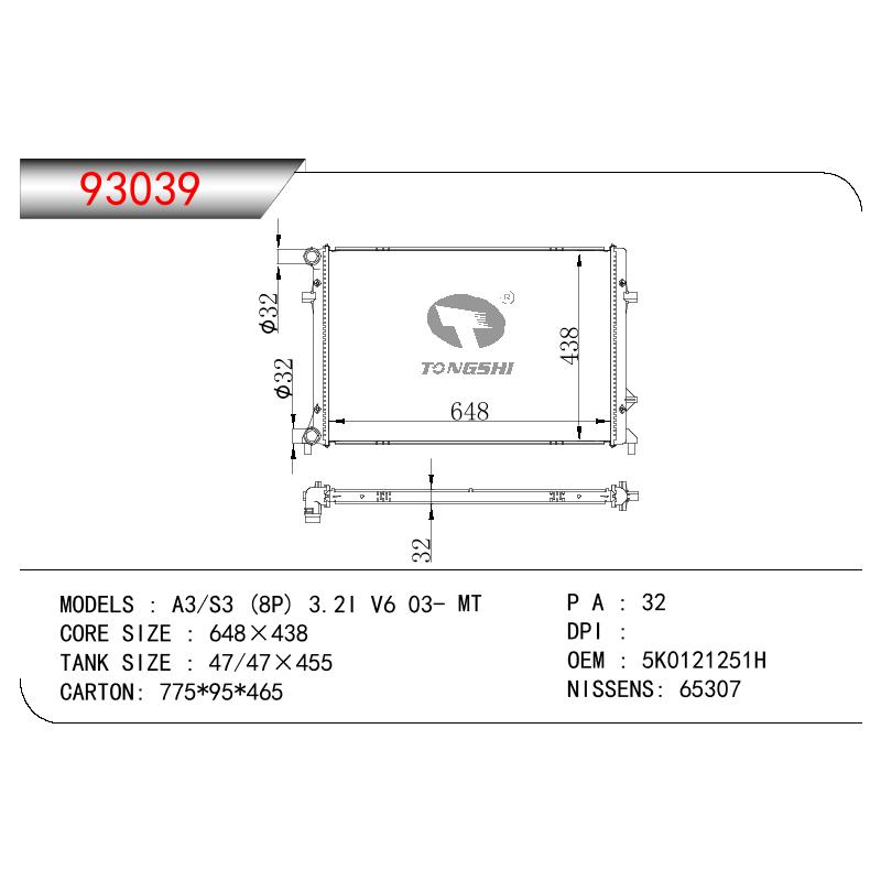 适用于VOLKSWAGEN A3/S3 (8P) 3.2I V6 OEM:5K0.121.251 H/1K0.121.251 K/1K0.121.253 K/5K0121253C/5K0121251H/5K0121251AB/5K012125C/5K0121253F