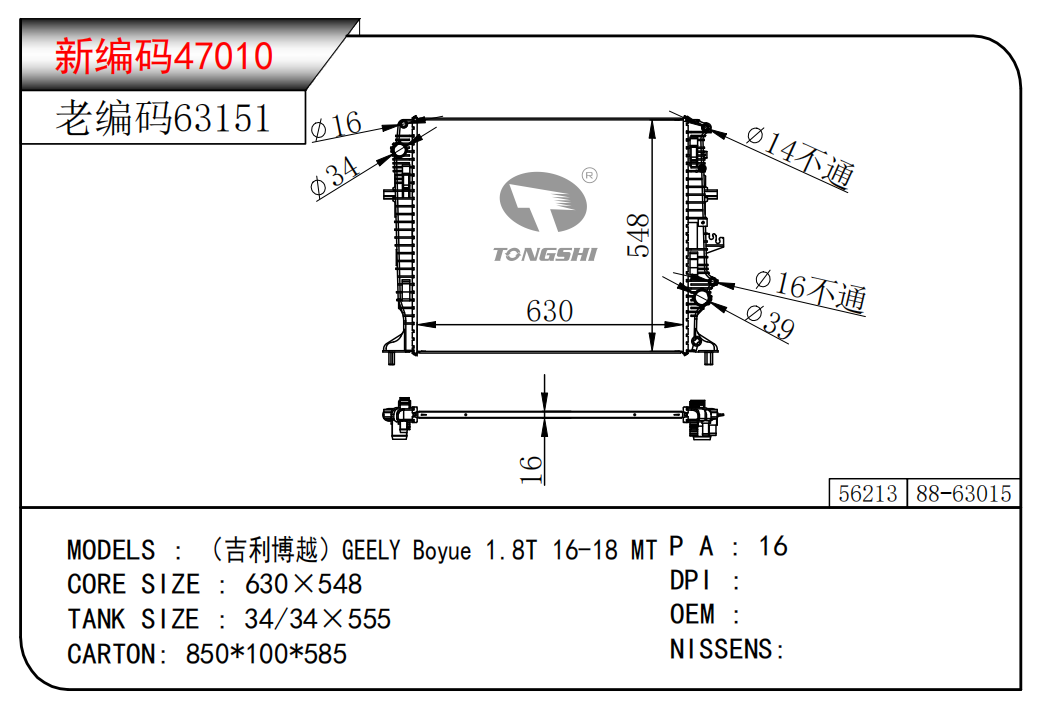 适用于沃尔沃V40 1.9TD D4192T 95- MT散热器