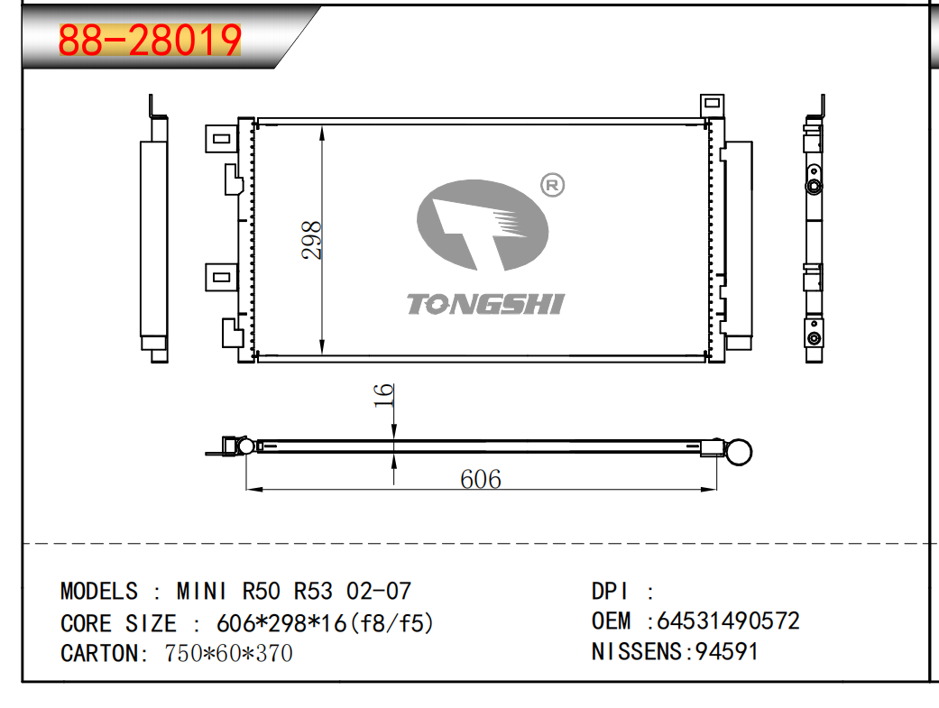 适用于沃尔沃V40 1.9TD D4192T 95- MT散热器