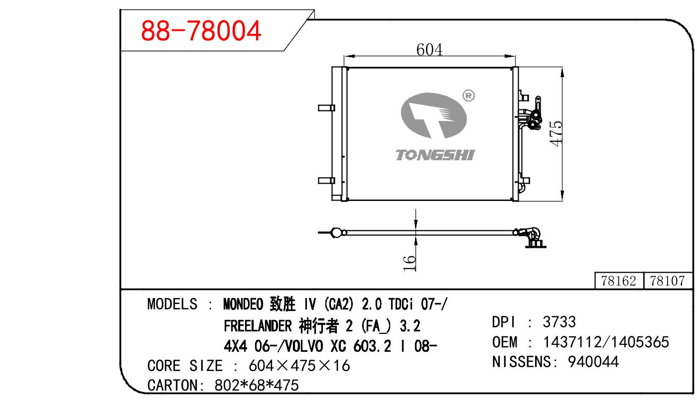 适用于福特致胜 IV (CA2) 2.0 TDCI 07-/神行者2(FA_) 3.2 4X4 06-/沃尔沃 XC 603.2 I08-冷凝器