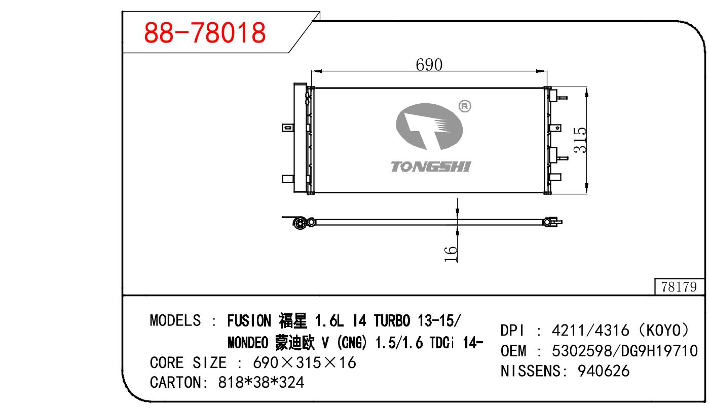 适用于沃尔沃V40 1.9TD D4192T 95- MT散热器