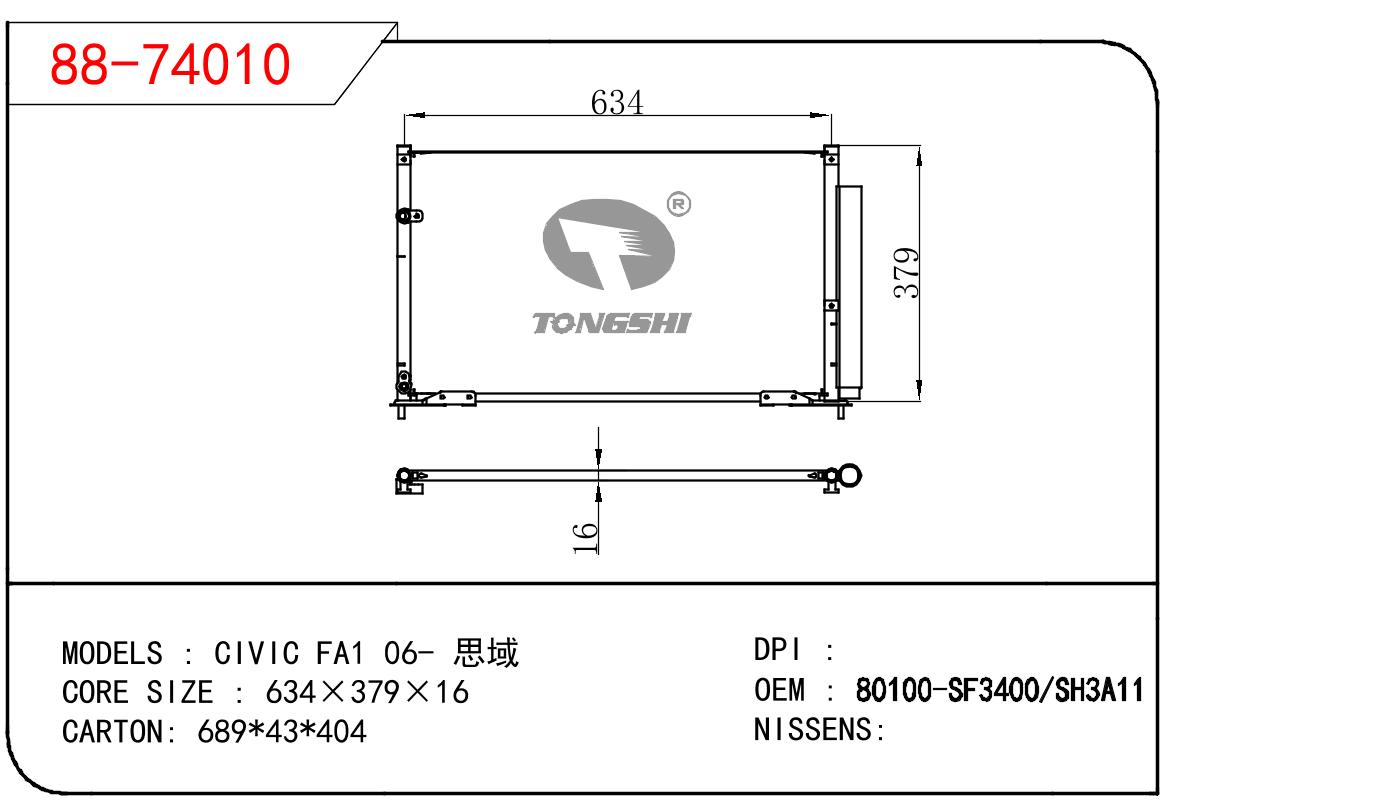 适用于HONDA CIVIC FA1 思域 OEM:80100-SF3400/80100-SH3A11/80110-SNN-A41/80100SF3400/80100SH3A11/80110SNNA41