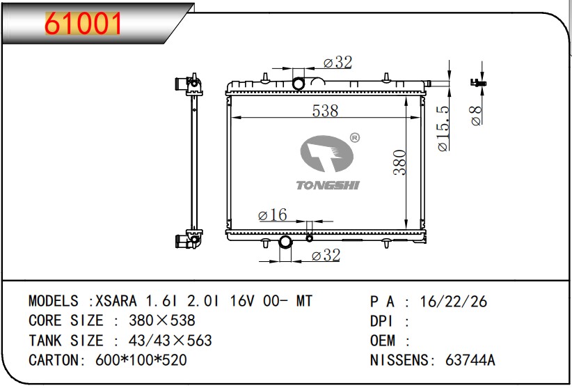 适用于沃尔沃V40 1.9TD D4192T 95- MT散热器