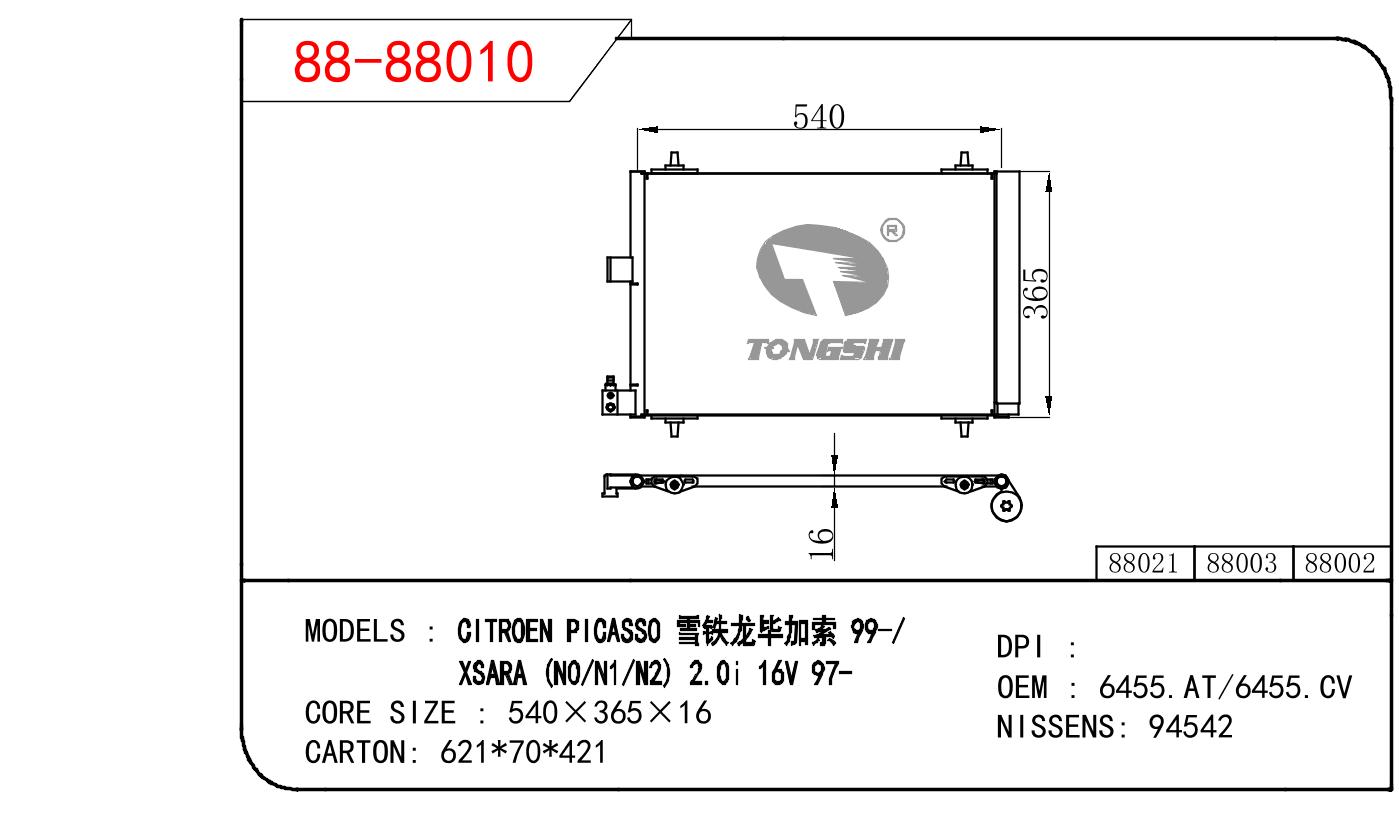 适用于PEUGEOT CITROEN PICASSO 雪铁龙毕加索 99-/XSARA(N0/N1/N2) 2.0I 16V 97- OEM:6455.AT/6455.CV