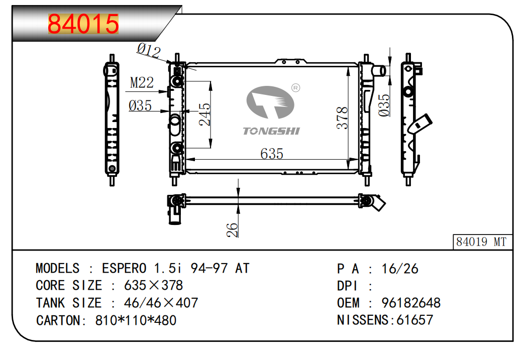 适用于沃尔沃V40 1.9TD D4192T 95- MT散热器