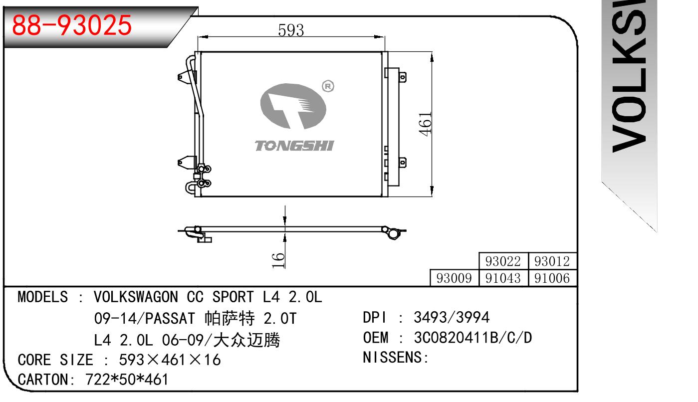 • VOLKSWAGON CC SPORT L4 2.0L 09-14/PASSAT 帕萨特 2.0T L4 2.0L 06-09/大众迈腾