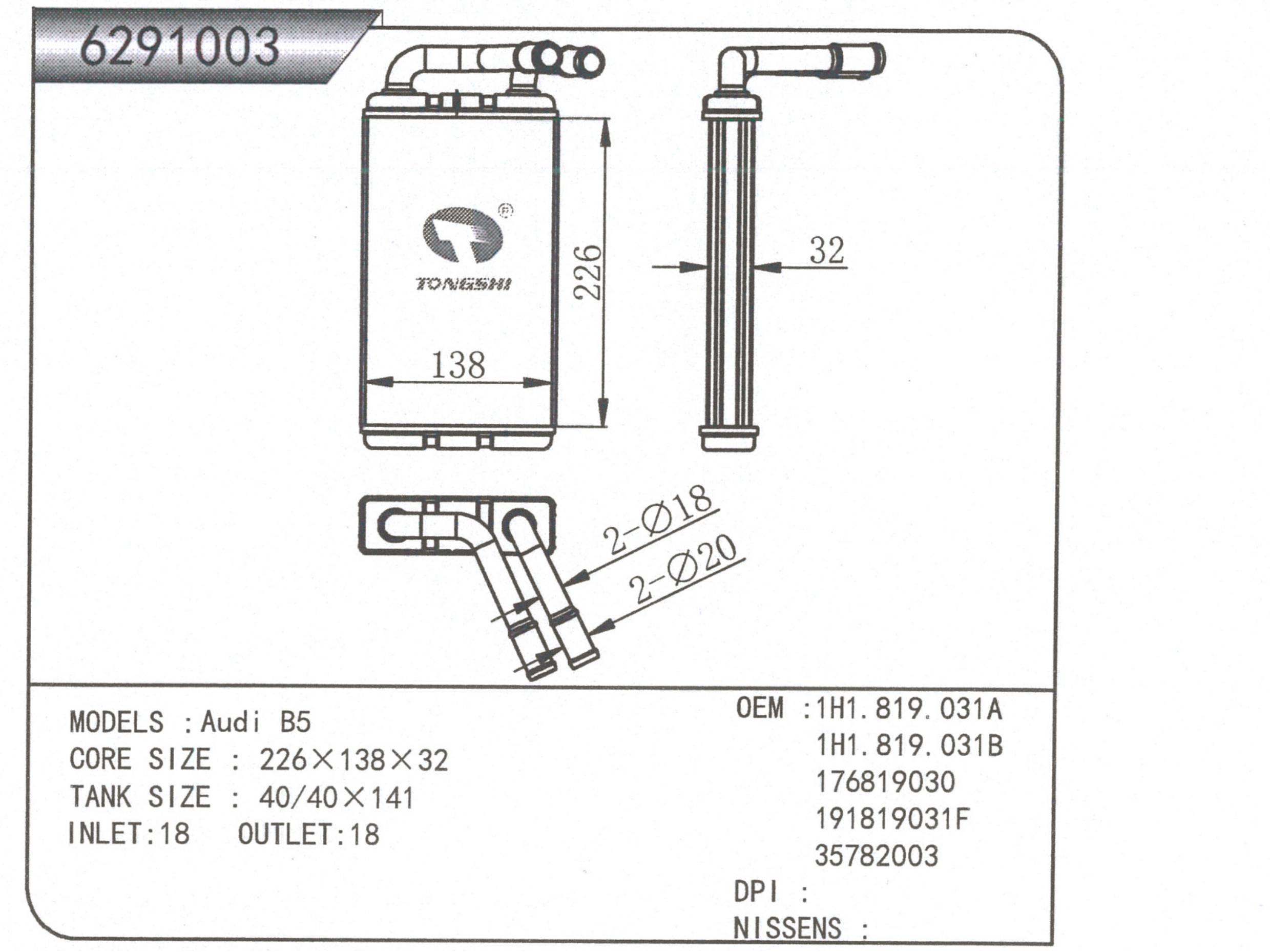 适用于沃尔沃V40 1.9TD D4192T 95- MT散热器