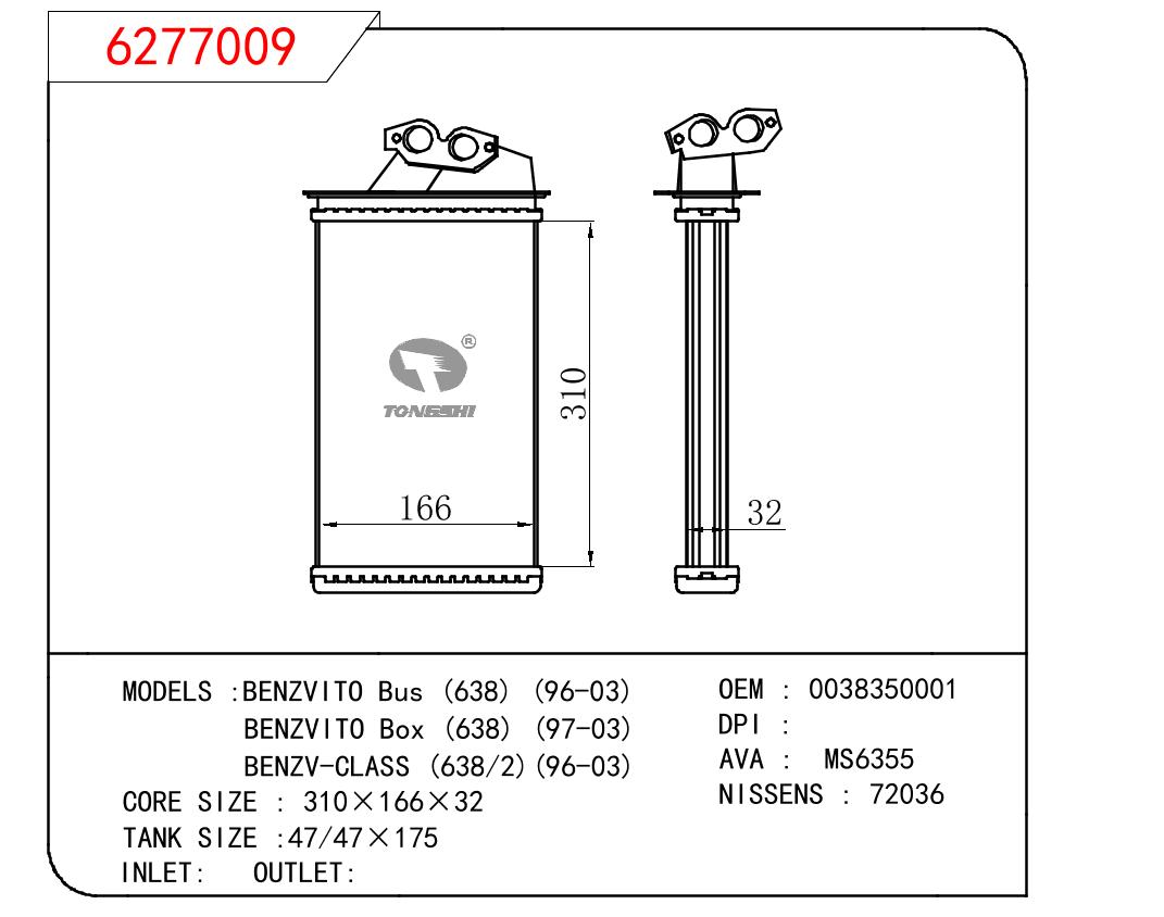 适用于BENZ BENZVITO BUS (638) 96-03/BENZVITO BOX (638) 97-03/BENZ-CLASS (638/2) 96-03 OEM:0038350001