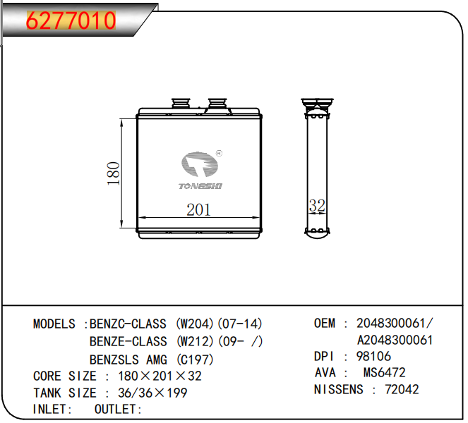 适用于 奔驰-CLASS (W204)(07-14) 奔驰-CLASS (W212)(09- /) 奔驰SLS AMG (C197) 暖风