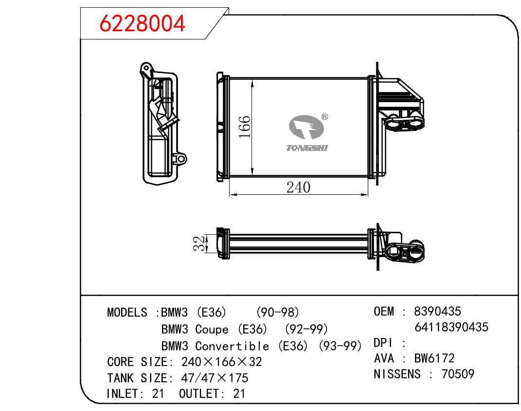 适用于宝马3 (E36) 90-98/宝马3 COUPE (E36) 92-99/宝马3 CONVERTIBLE (E36) 93-99 暖风 OEM:8390435/64118390435