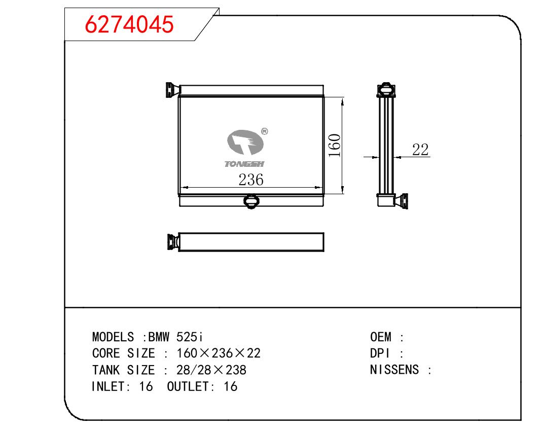 适用于宝马E30 320 i 82-93 AT散热器