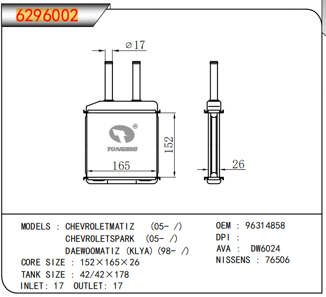 适用于沃尔沃V40 1.9TD D4192T 95- MT散热器