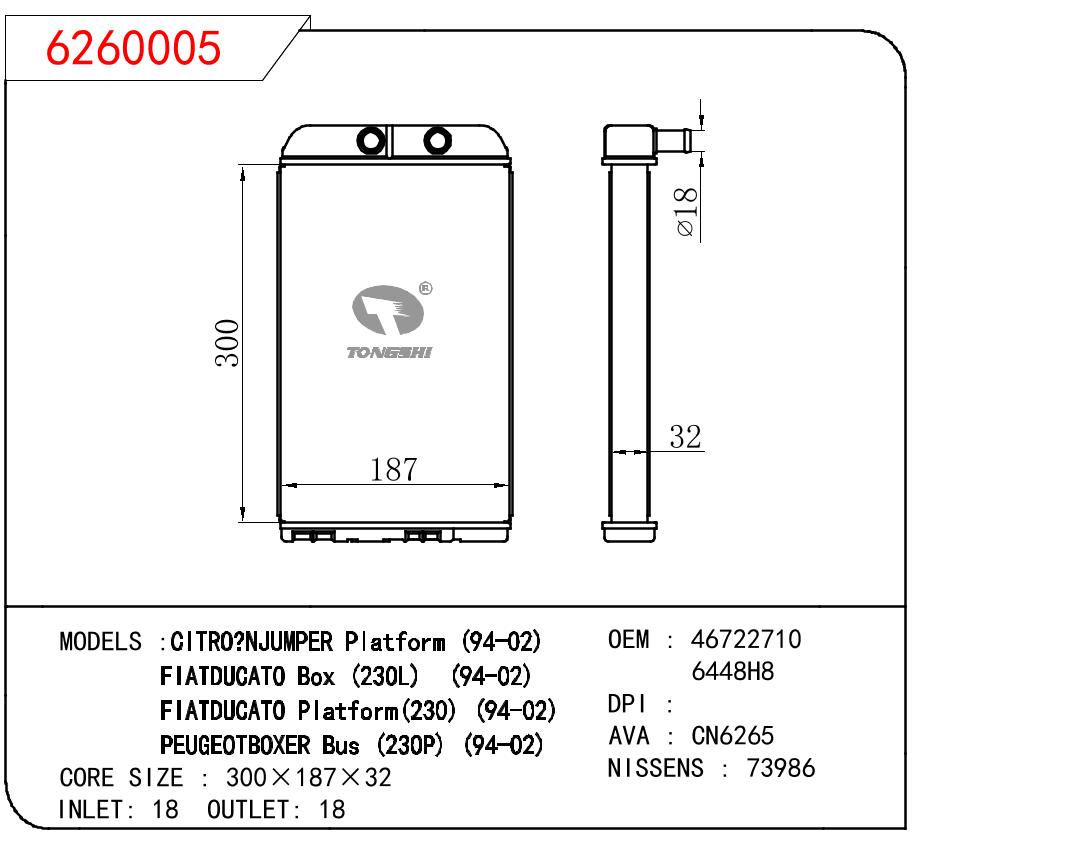 适用于FIAT CITRO NJUMPER PLATFOM 94-02/FIATDUCATO BOX (230L) 94-02/FIATDUCATO PLATFORM (230) 94-02/PEUGEOTBOXER BUS (230P) 94-02 OEM:46722710/6448H8