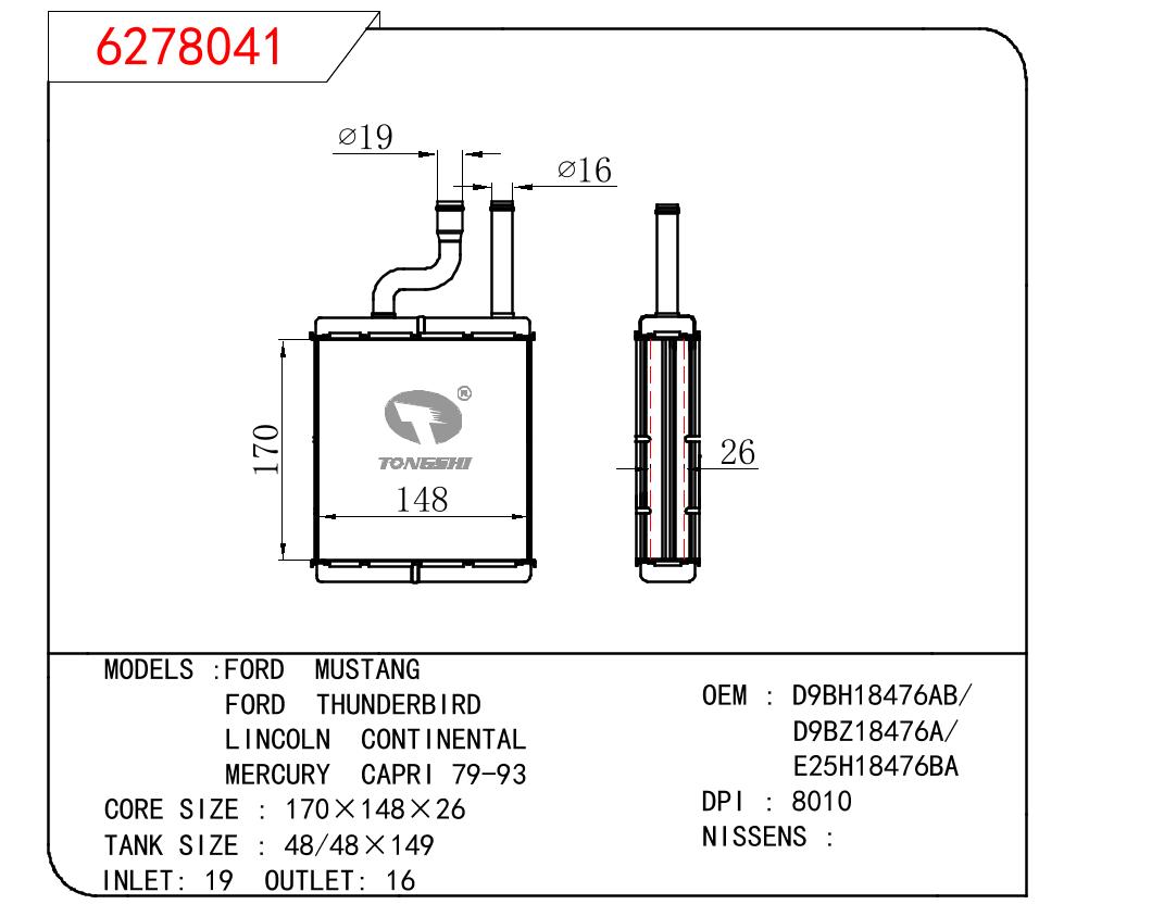 适用于FORD FORD MUSTANG/FORD THUNDERBIRD /LINCOLN CONTINENTAL /MERCURY CAPRI 79-93 OEM:D9BH18476AB/D9BZ18476A/E25H18476BA