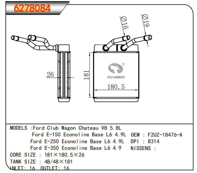 • 芯体尺寸:181*180.5*26