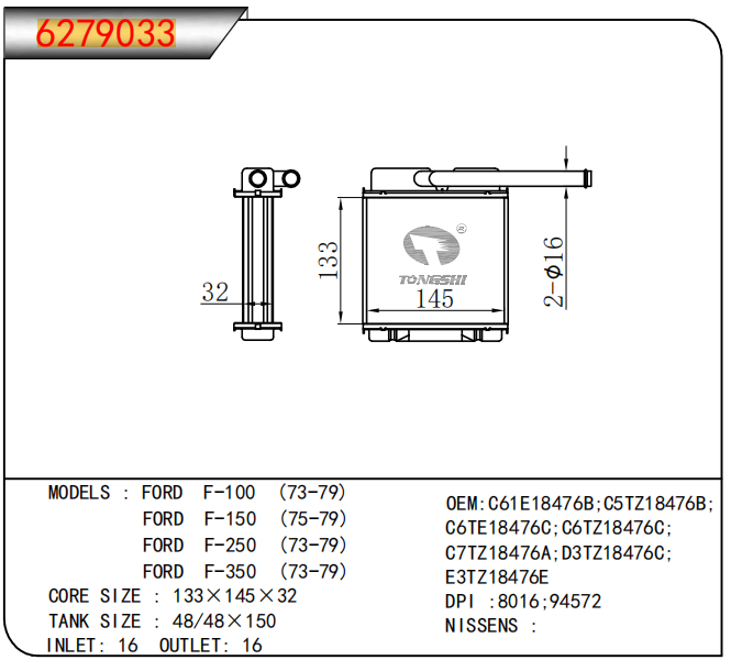 • 芯体尺寸:133×145×32