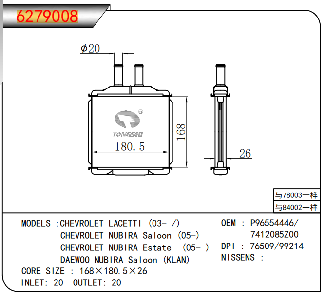 适用于雪佛兰LACETTI (03- /)/雪佛兰NUBIRA Saloon (05-)/雪佛兰NUBIRA Estate (05- )/大宇NUBIRA Saloon (KLAN)暖风