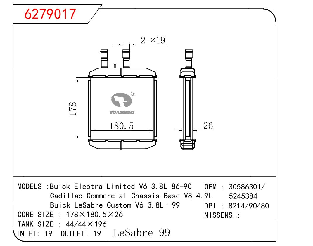• Buick Electra Limited V6 3.8L 86-90/Cadillac Commercial Chassis Base V8 4.9L/Buick LeSabre Custom V6 3.8L -99