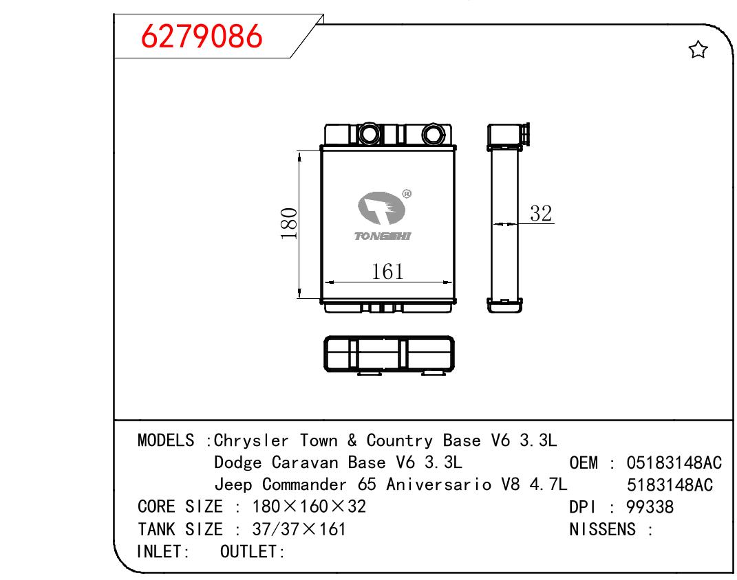 适用于GM DODGE Chrysler Town & Country Base V6 3.3L/Dodge Caravan Base V6 3.3L/Jeep Commander 65 Aniversario V8 4.7L OEM:05183148AC/5183148AC