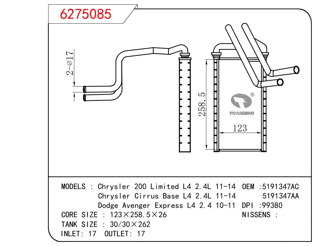 • Chrysler 200 Limited L4 2.4L 11-14/Chrysler Cirrus Base L4 2.4L 11-14/Dodge Avenger Express L4 2.4 10-11