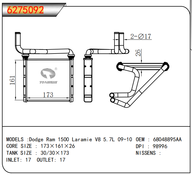适用于沃尔沃V40 1.9TD D4192T 95- MT散热器
