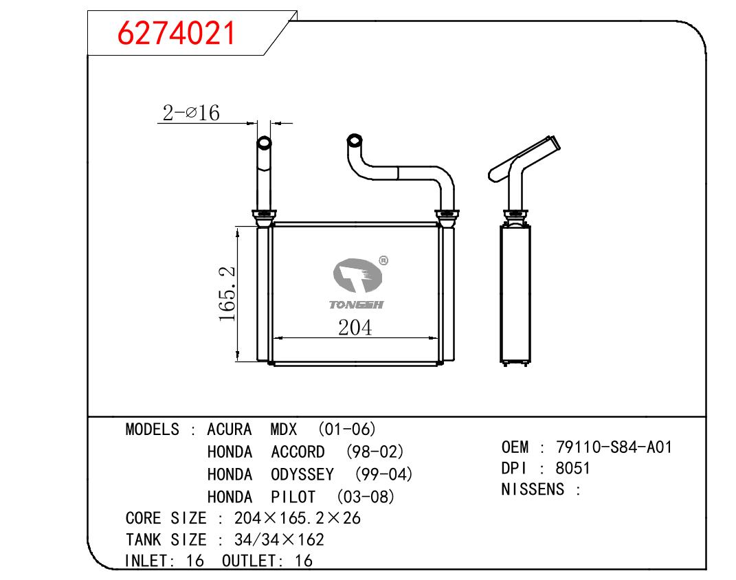 • ACURA MDX 01-06/HONDA ACCORD 98-02/HONDA ODYSSEY 99-04/HONDA PILOT 03-08
