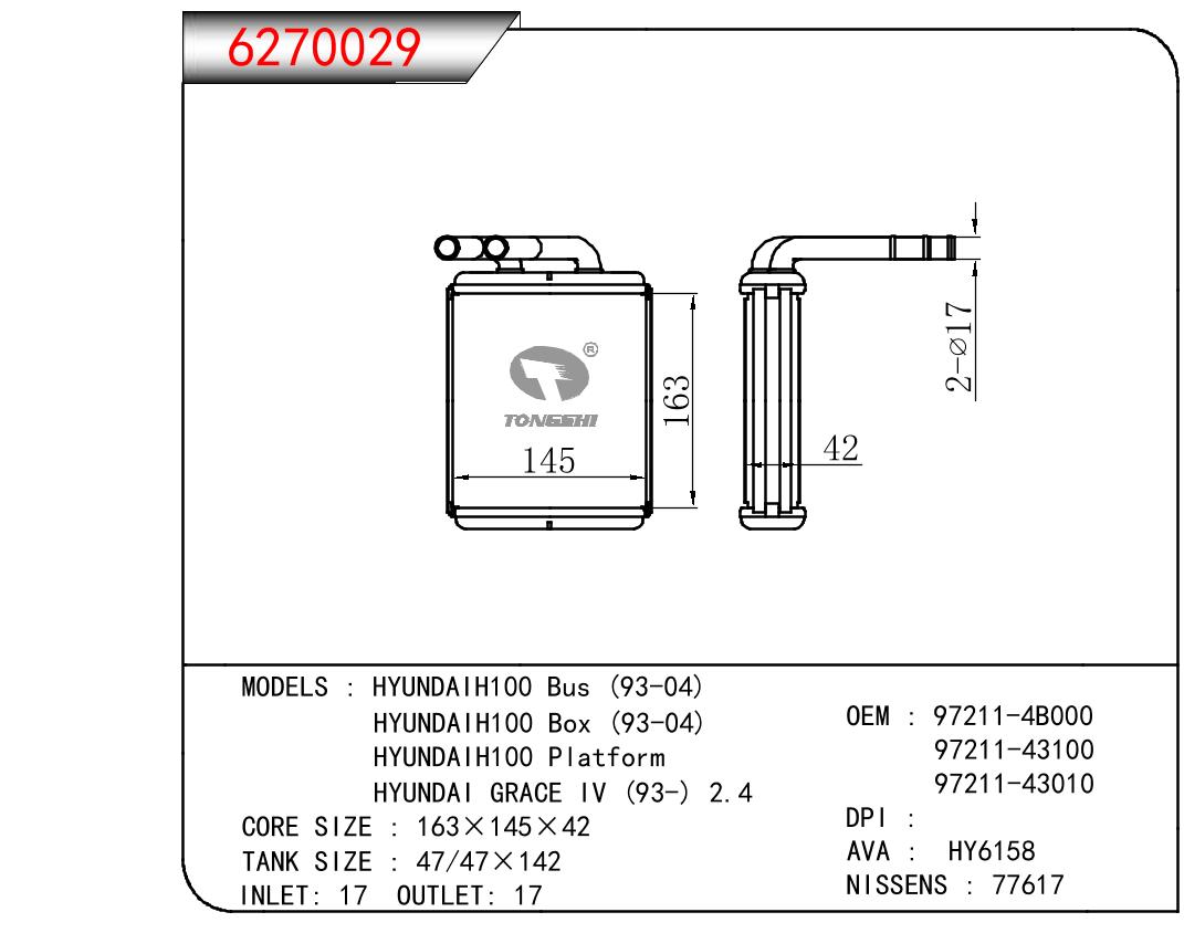 • 芯体尺寸:163*145*42