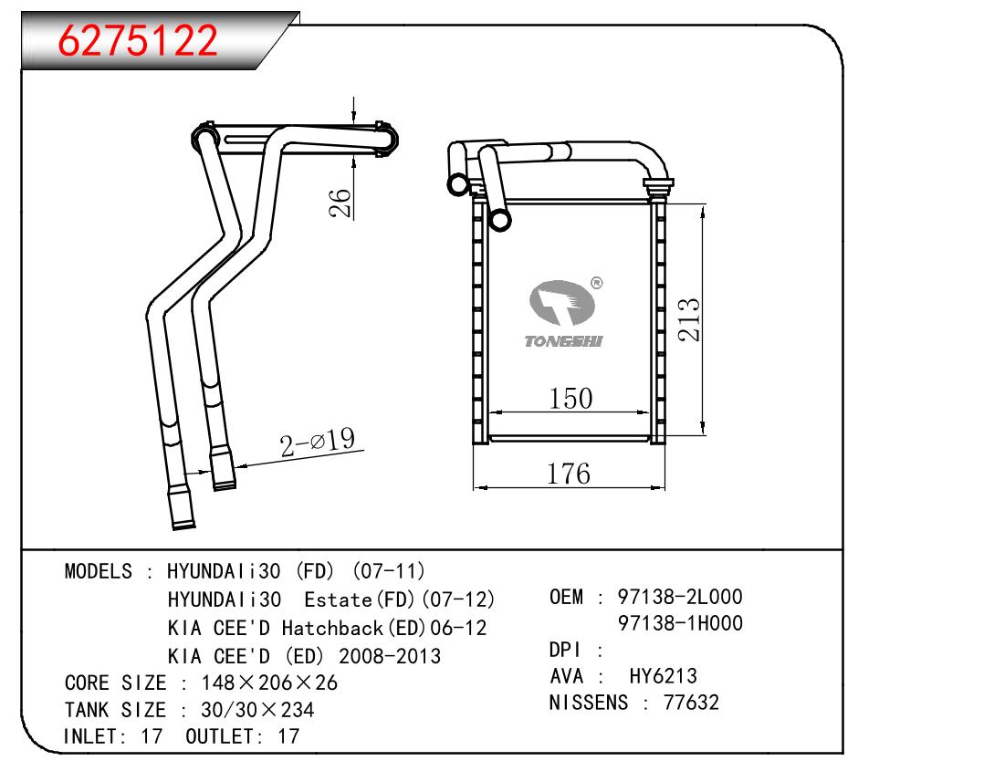 适用于HYUNDAI HYUNDAIi30 (FD) (07-11)/HYUNDAIi30 Estate(FD)(07-12)/KIA CEE'D Hatchback(ED)06-12/KIA CEE'D (ED) 2008-2013 OEM:97138-2L000,97138-1H000