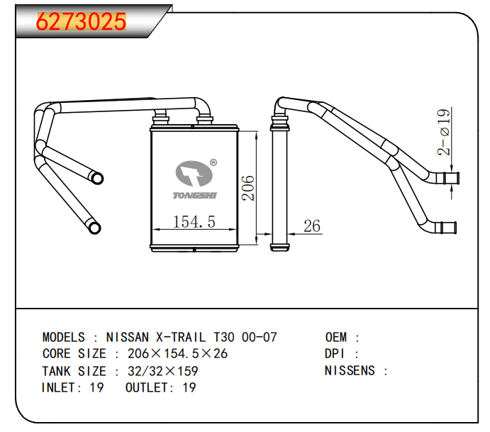 适用于沃尔沃V40 1.9TD D4192T 95- MT散热器