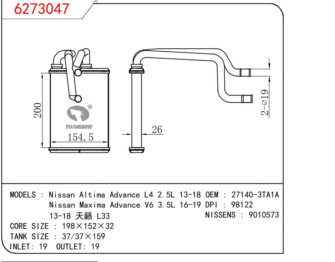 • Nissan Altima Advance L4 2.5L 13-18/Nissan Maxima Advance V6 3.5L 16-19/13-18 天籁 L33