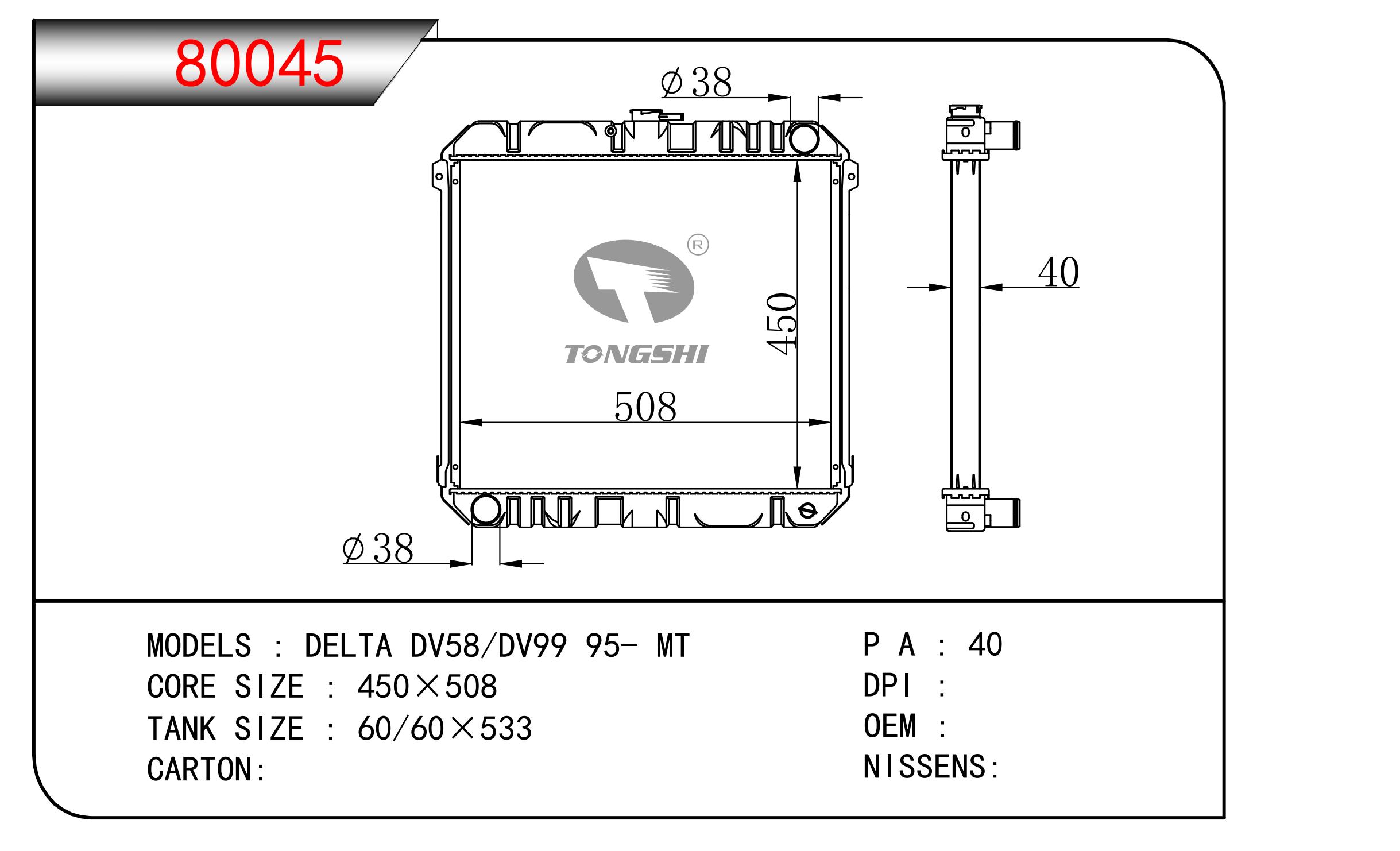 适用于沃尔沃V40 1.9TD D4192T 95- MT散热器