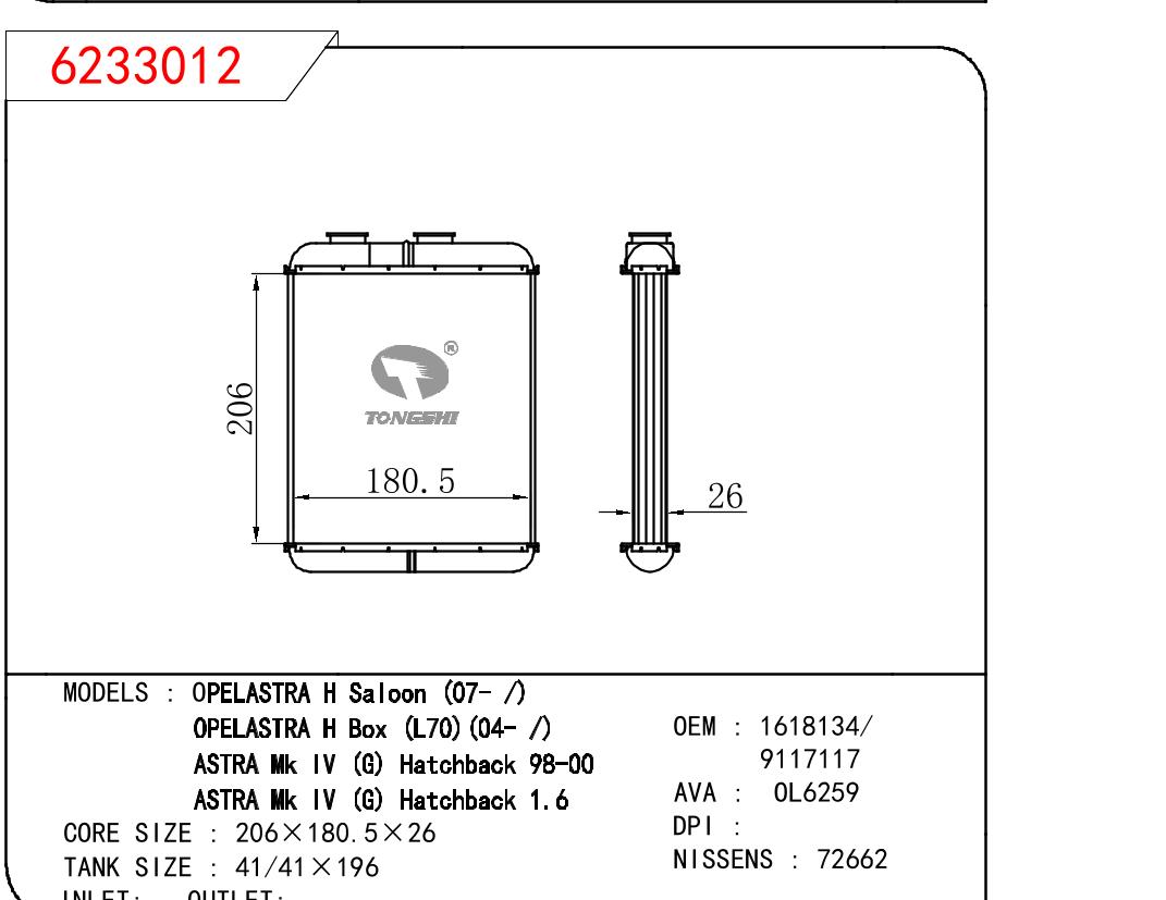 • 芯体尺寸:206*180.5*26