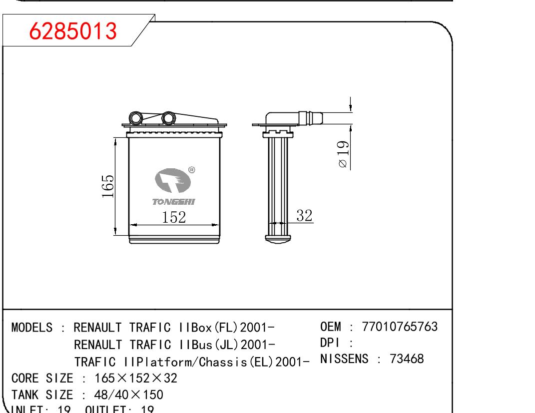 • 芯体尺寸:165*152*32