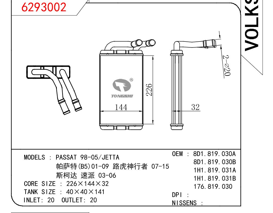 • PASSAT 98-05/JETTA/帕萨特(B5)01-09 路虎神行者 07-15/斯柯达 速派 03-06