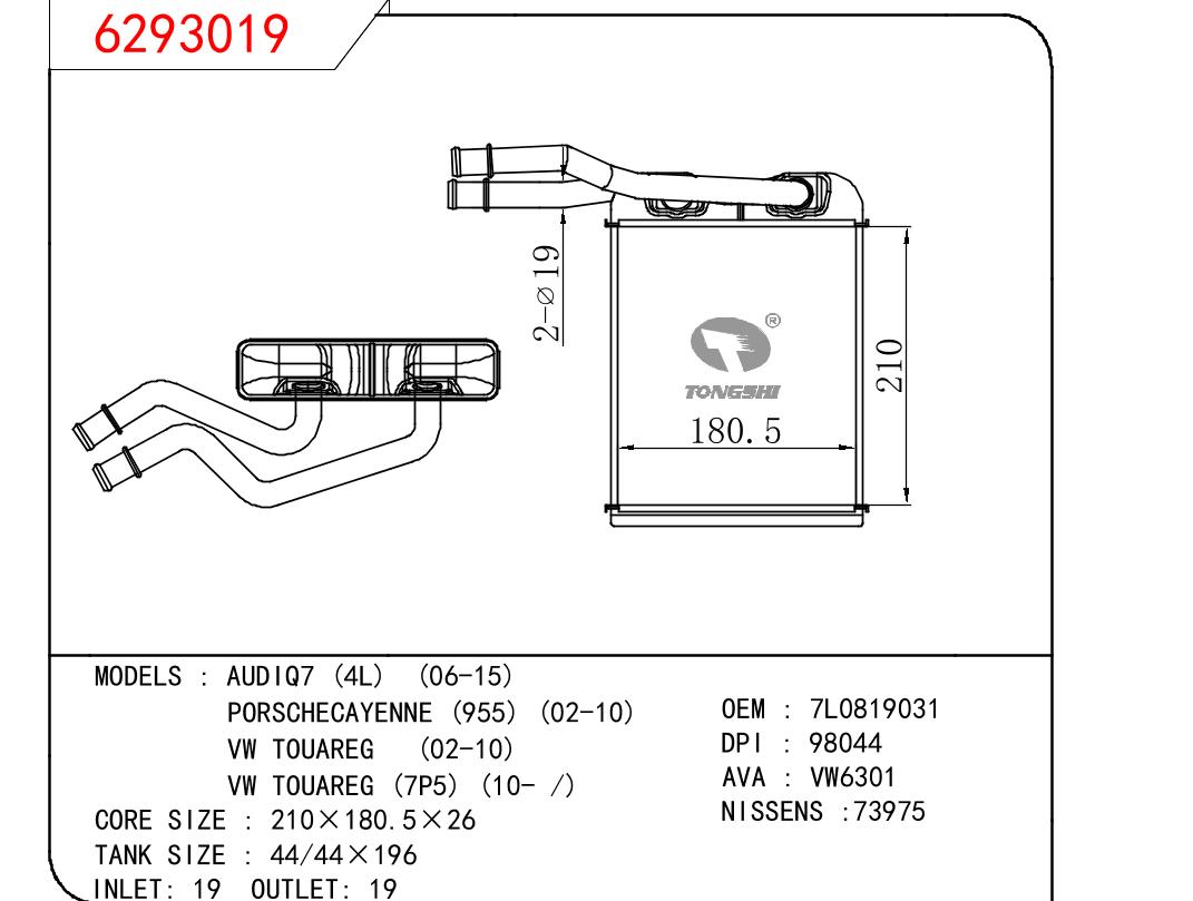 适用于奥迪Q7 (4L) (06-15)/保时捷CAYENNE (955) (02-10)/大众途锐 (02-10)/大众途锐 (7P5) (10- /)暖风
